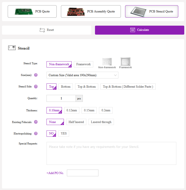 - They have provided this calculator for single PCB, PCB Assembly & PCB Stencil, as shown in below figure: