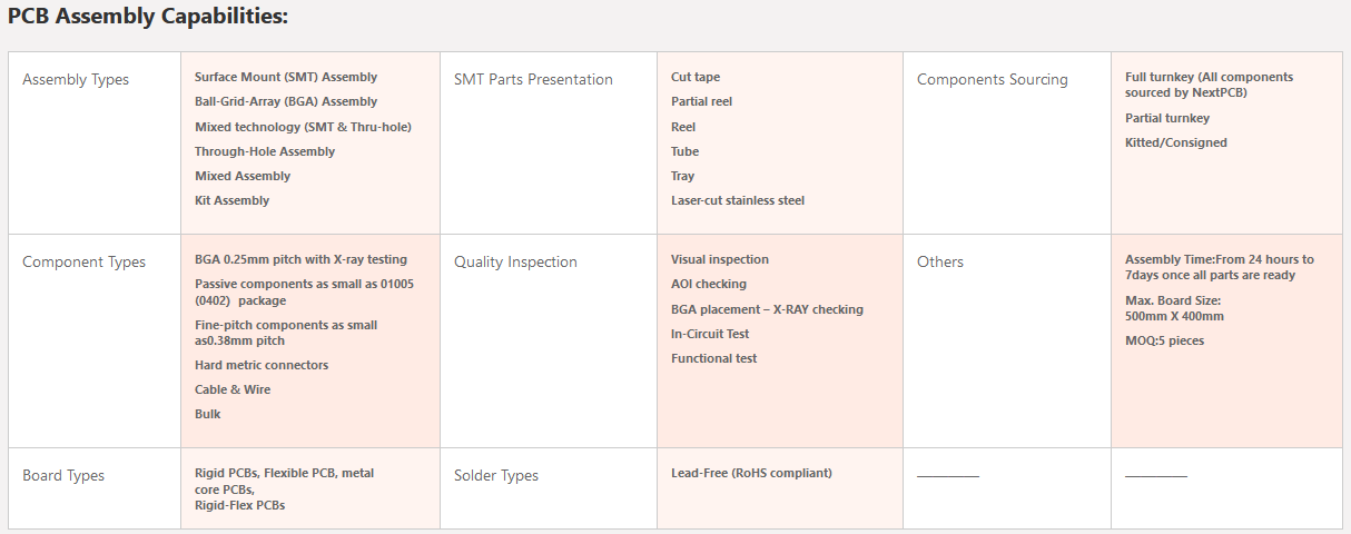 NextPCB PCB Assembly Capabilities