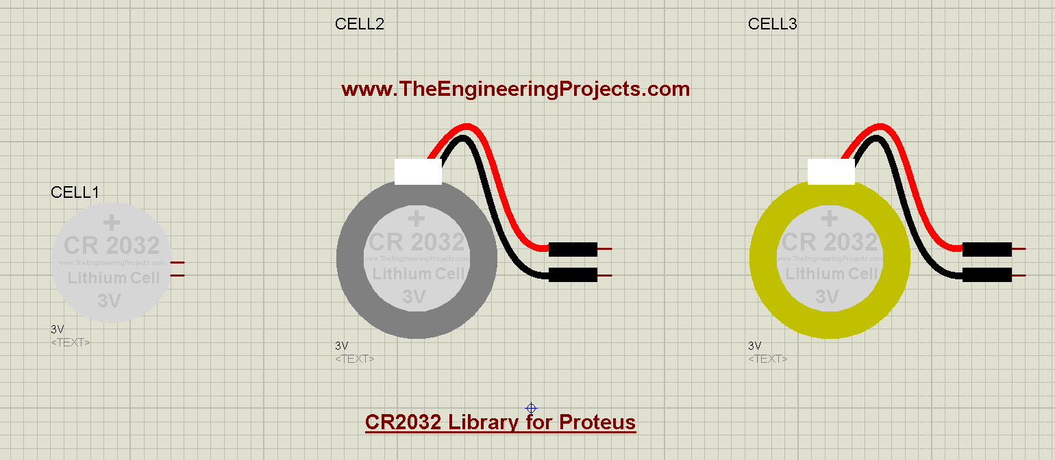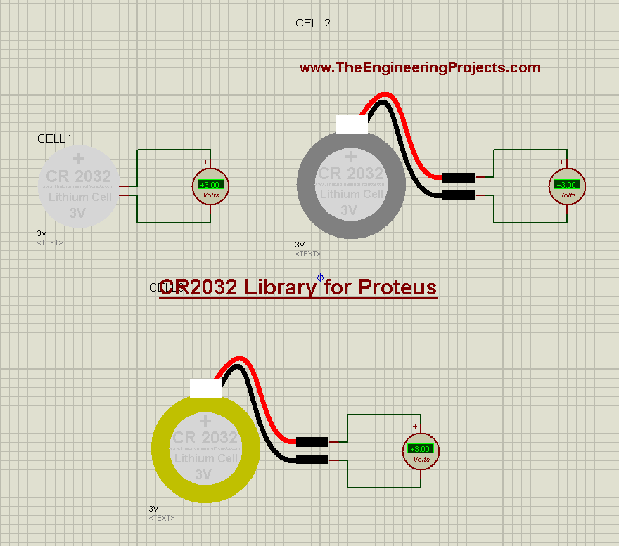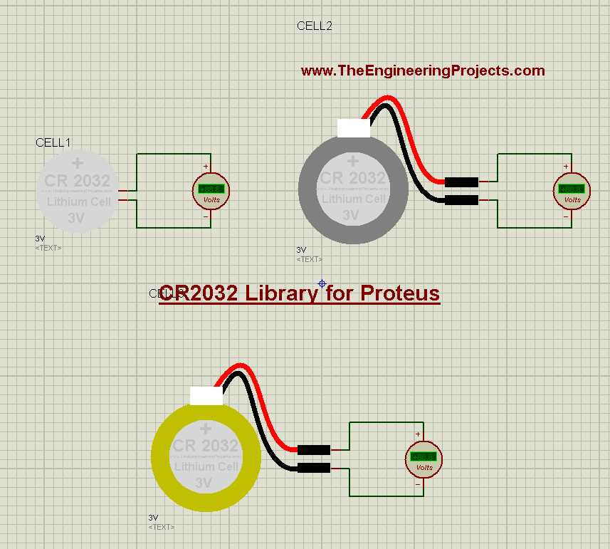 This library contains 3 types of these small cells, one is the cell itself, while the other two models are cells with leads. Before downloading the Proteus Library zip file, let’s first have a brief overview of CR2032:
