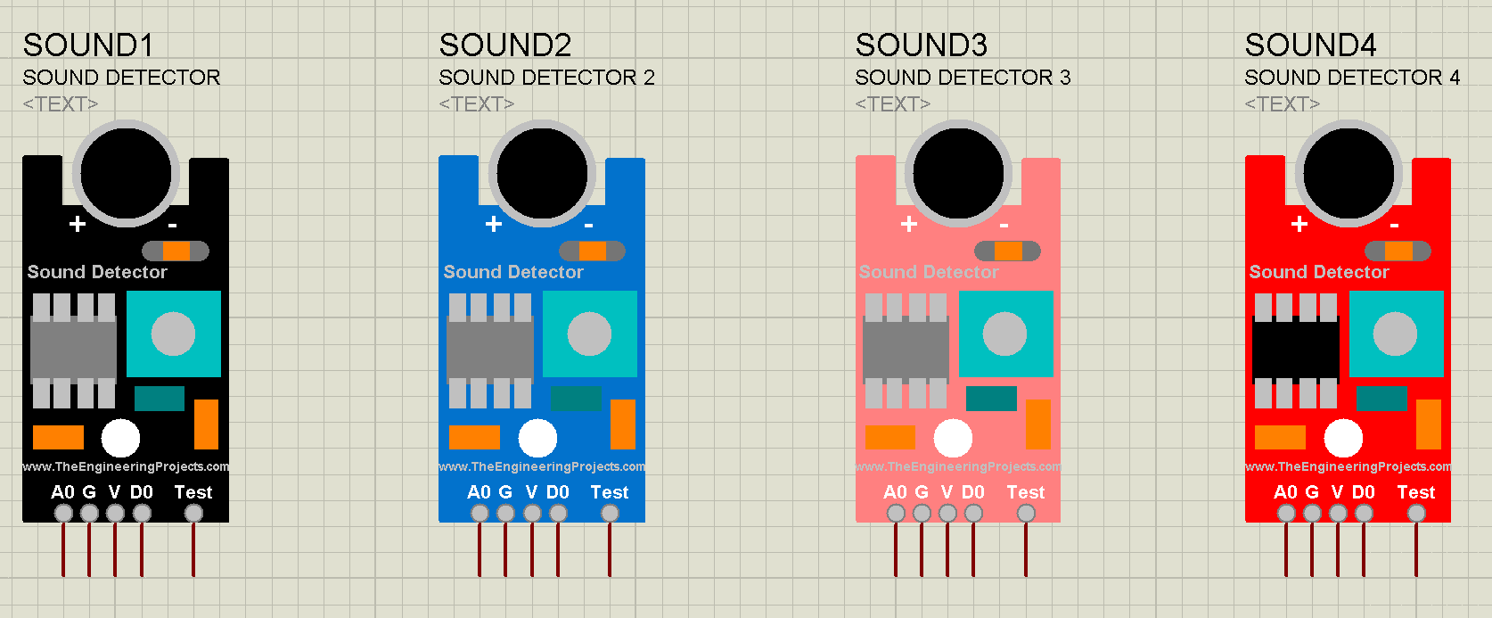 - I have simulated two of these sound detector sensors and you can see they have different outputs because they have different voltage at their Test Pins.