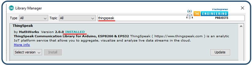 - We have already discussed above how to download and add the ThingSpeak library file to Arduino IDE.