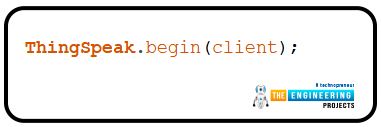 - Initialize the ThingSpeak server using begin() function that is passing client (globally created) as an argument.