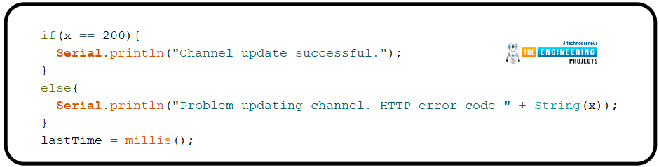 Serial.println(“Problem updating channel. HTTP error code ” + String(x) );