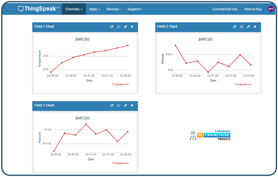 The post ESP32 BMP280 sensor Interfacing with ThingSpeak WebServer appeared first on The Engineering Projects.